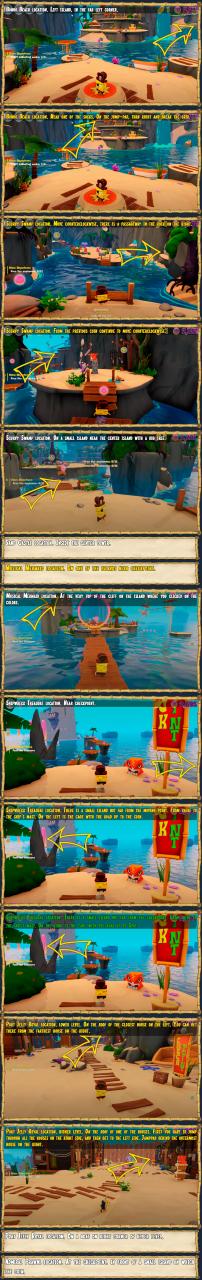 [Coin] Twitchy’s Cottage location. From the first pressure plate on the tree for the last coin, continue to go clockwise. It is necessary to climb the rock in the center of the location. After climbing, look to your left. There will be a coin, first reach the nearest ledge, and from there on the wooden bridge go to the ledge with the coin.