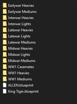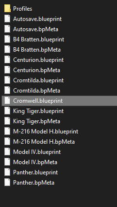 In these files are the tanks you can face in the scenarios mode. Just go into one and pick a blueprint. For this guide i’ll yoink the Cromwell from midwar mediums