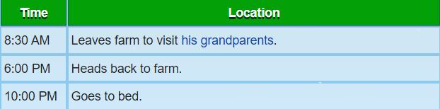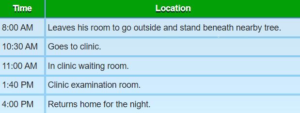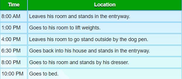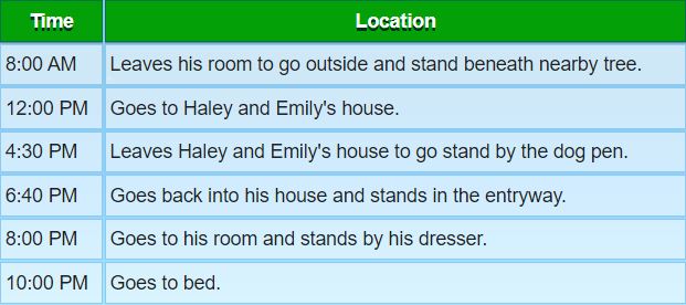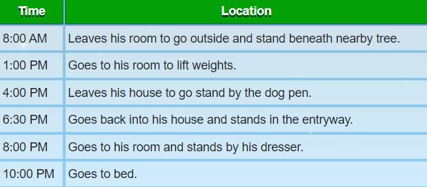 Shown below are Alex’s schedules prioritized highest to lowest. For example, if it is raining, that schedule overrides all others.