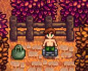 You see Alex with his gridball. He greets you and tries to toss you the gridball. You fail to catch it. He laughs and says it was a nice try. He goes on to tell you he’s sure that he’s going to become the first professional gridball player from Stardew Valley. He asks you what you think his chances are.