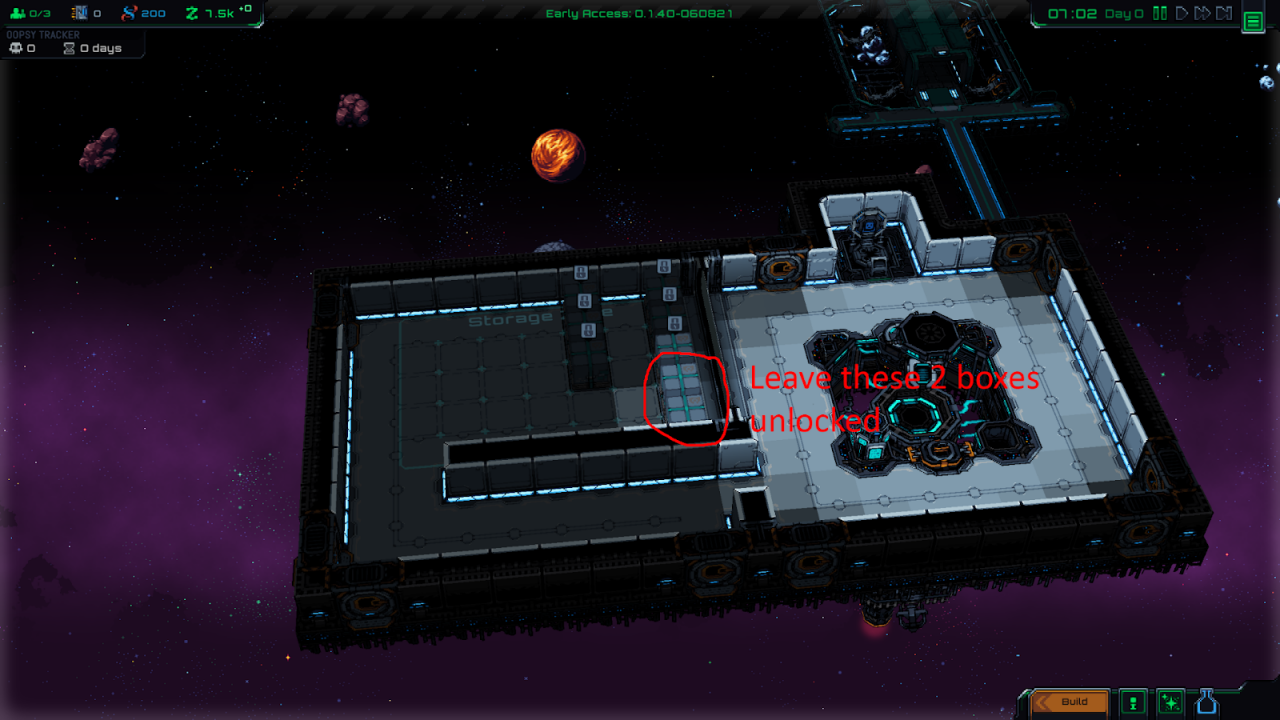 Go ahead and lock most of your boxes now. You should leave a couple of them unlocked so that colonists can open them and get the supplies inside.