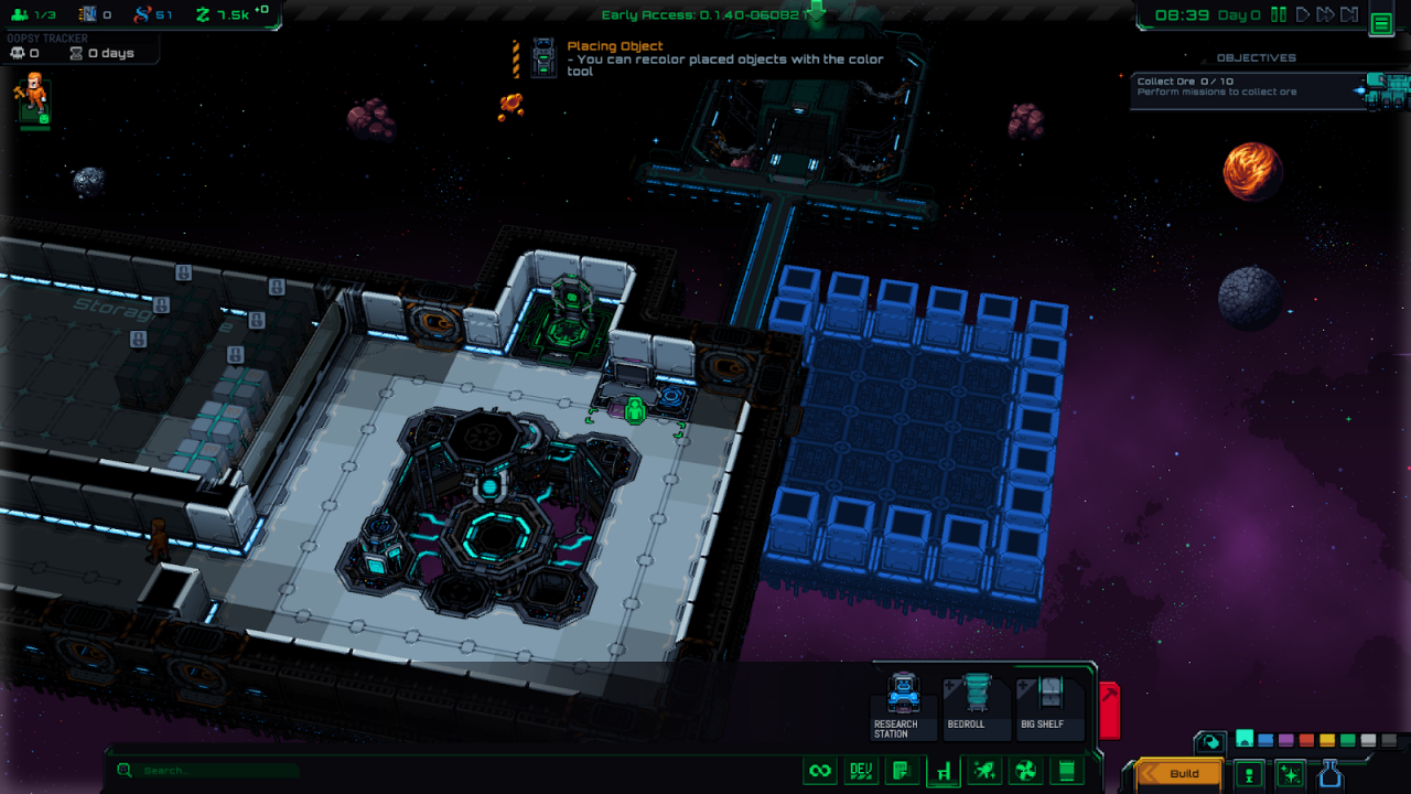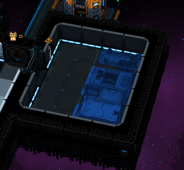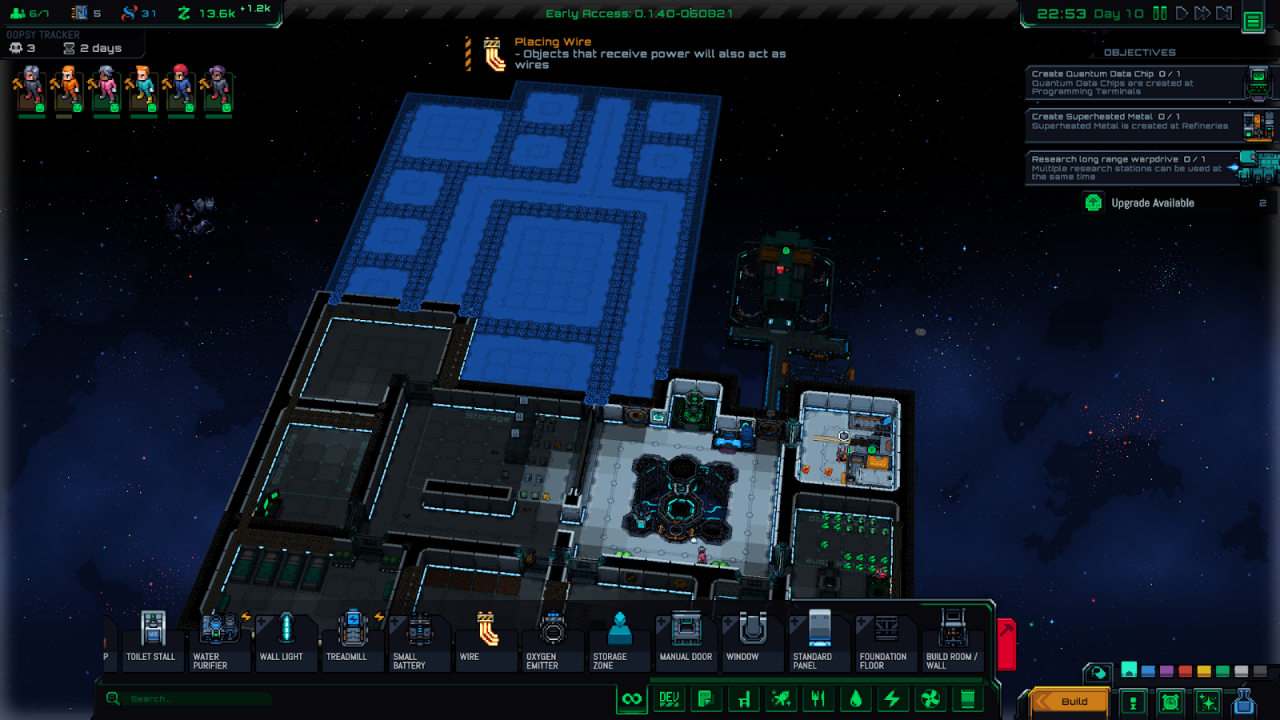 Here’s what my map looks like after placing down the research station. The station is blue just like the room, which indicates it hasn’t been built yet.