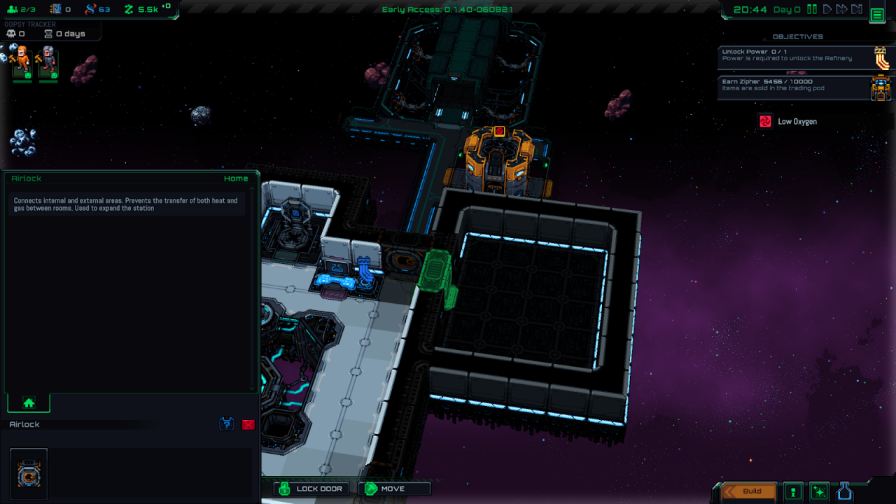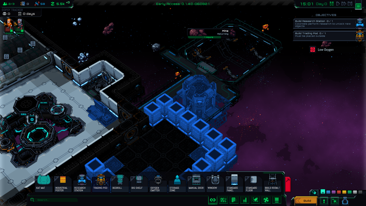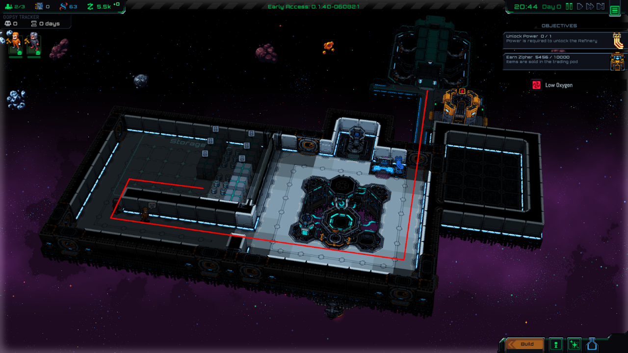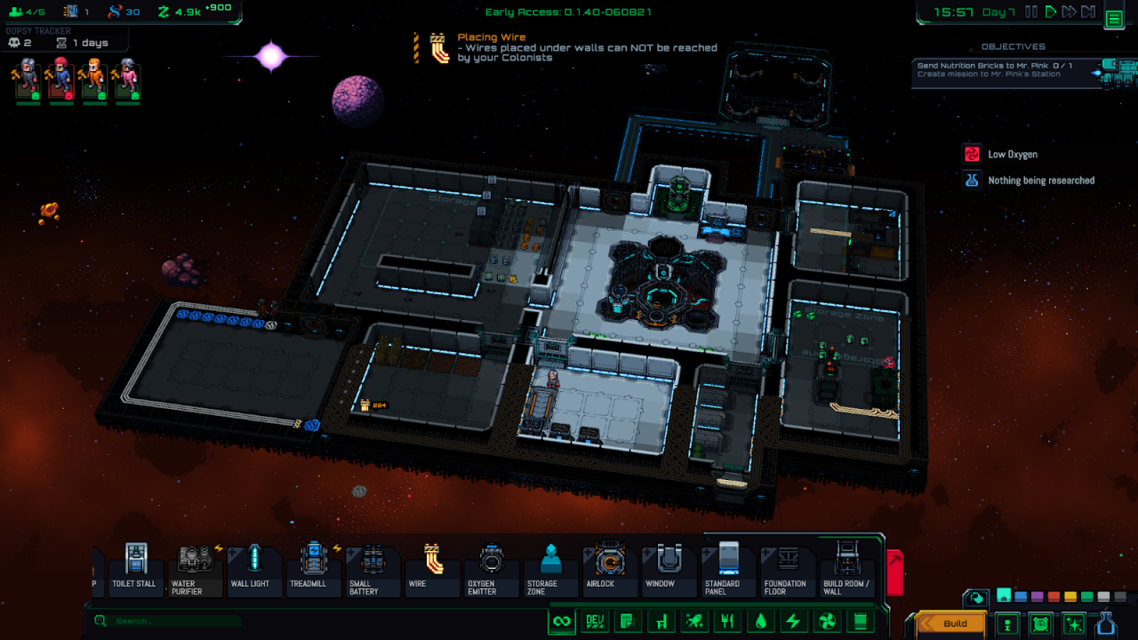 BTW, once your building gets started you may get a “Low Oxygen” warning on the right hand side of your screen. You can safely ignore this, it’s just telling you that the room you’re building doesn’t have oxygen yet. Of course it doesn’t, it’s out in space?