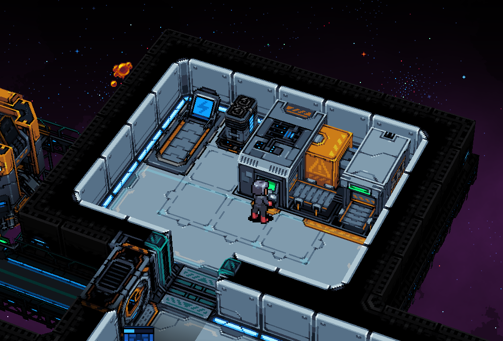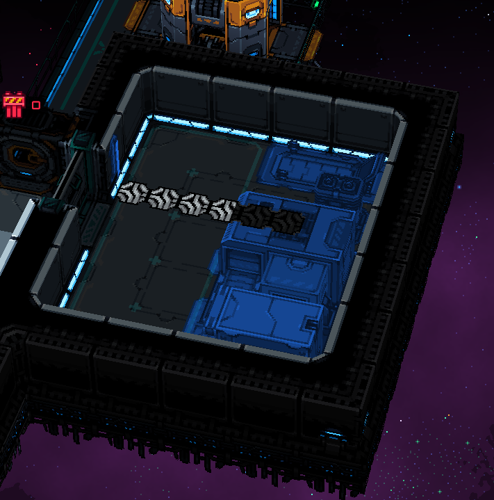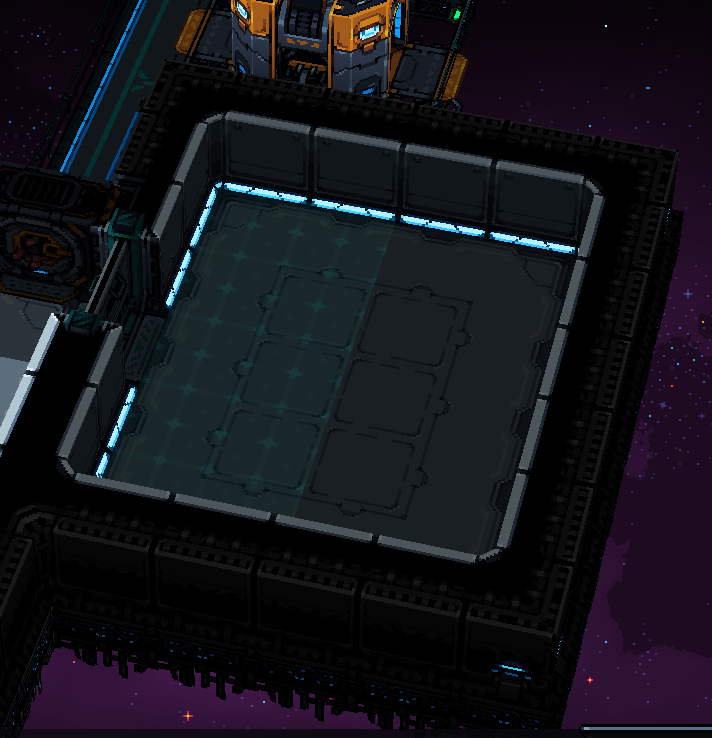 We want to expand our station to add a new room, so we need the “Build Room / Wall” piece. Left click on that, and you’ll see a transparent blue grid appear to aid in placement.