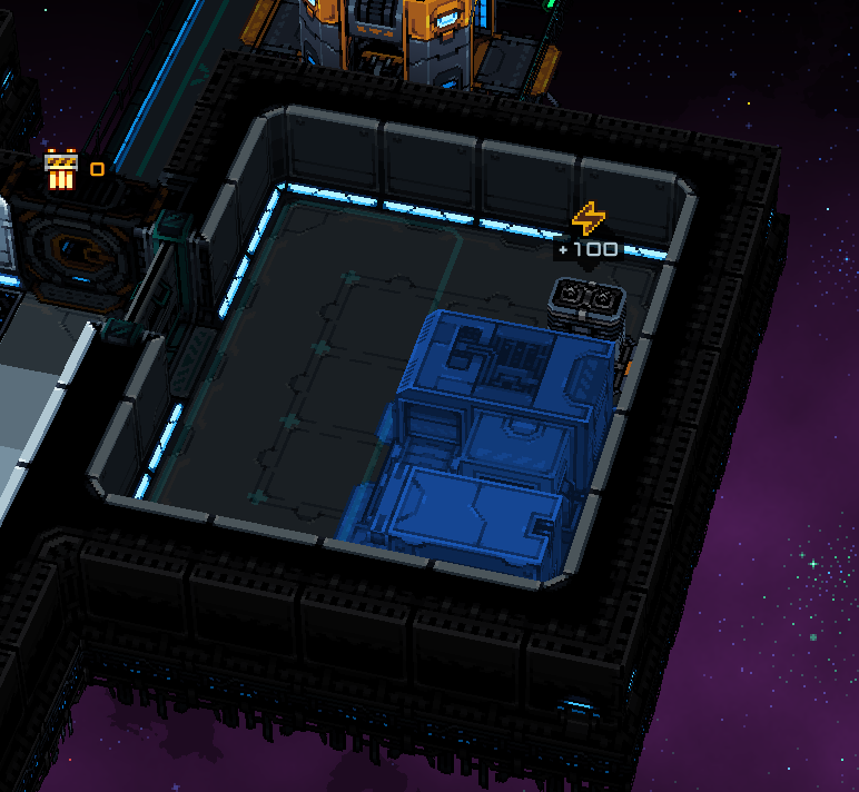 Once we load into the game, we’re presented with our basic station. The starting map is always the same, you should see your core and the colors you chose in the middle. I chose a light blue core, don’t worry if yours looks a little different than mine in the screenshots.