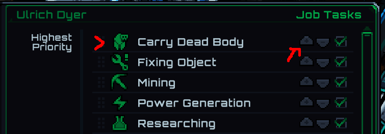 We can leave Carry Dead Body near the top for everyone who is capable of doing it until we get a dedicated body recoverer with the Morbid Curiosity trait.