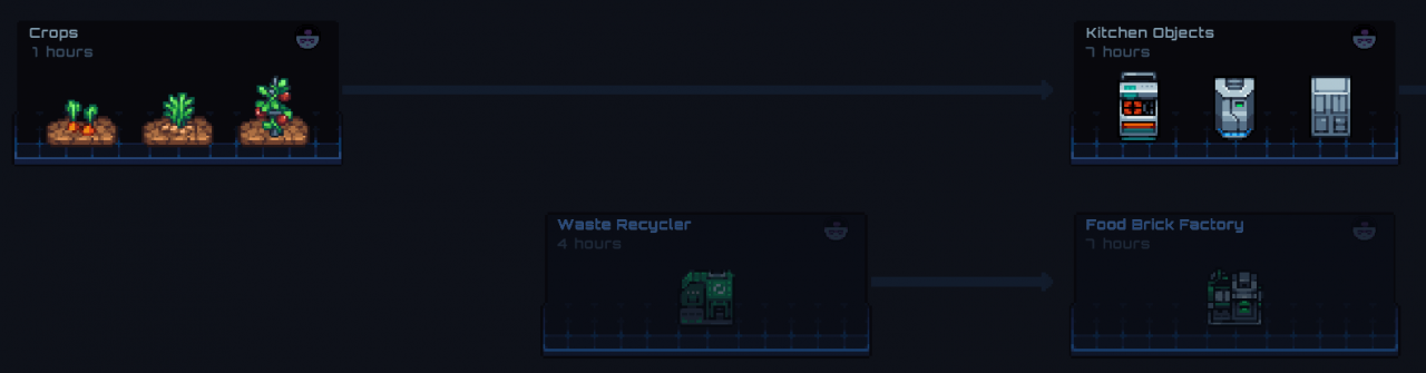 Crops and Kitchen Objects look like the next most important thing … but they have a prerequisite in order to grow: carried or piped water.