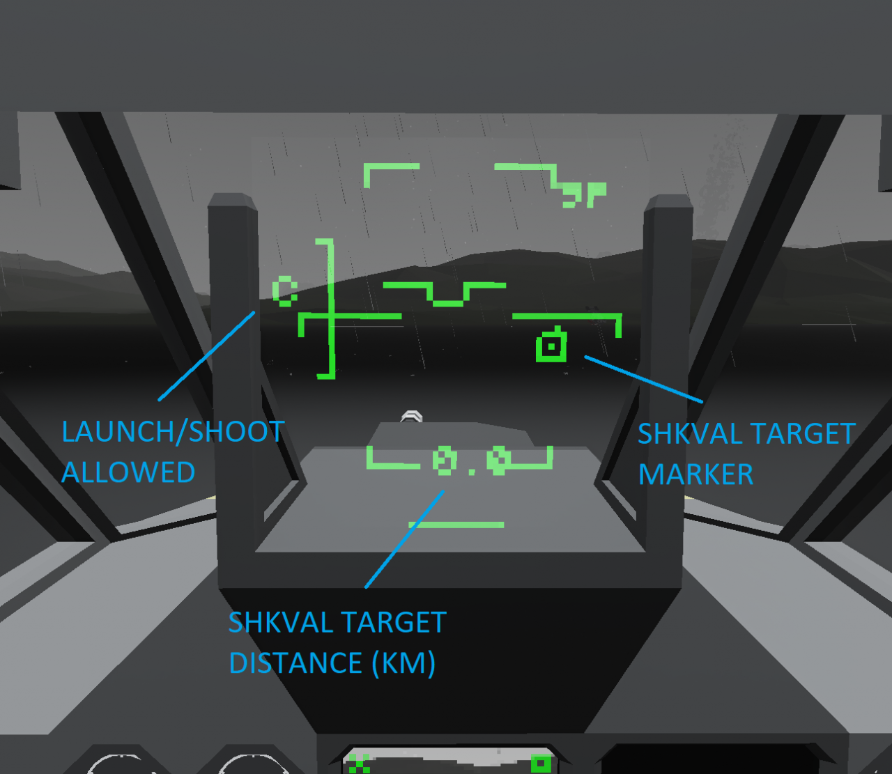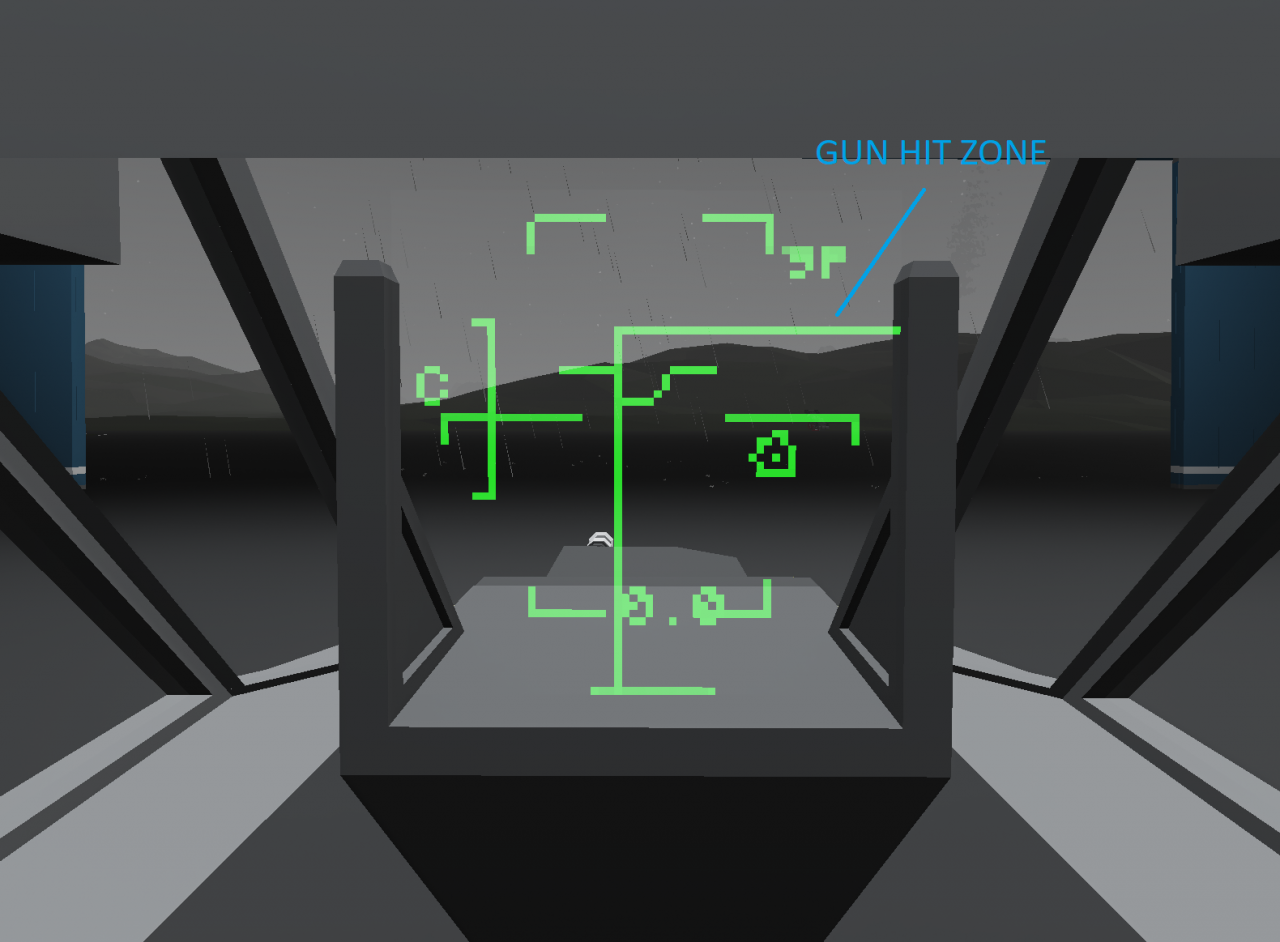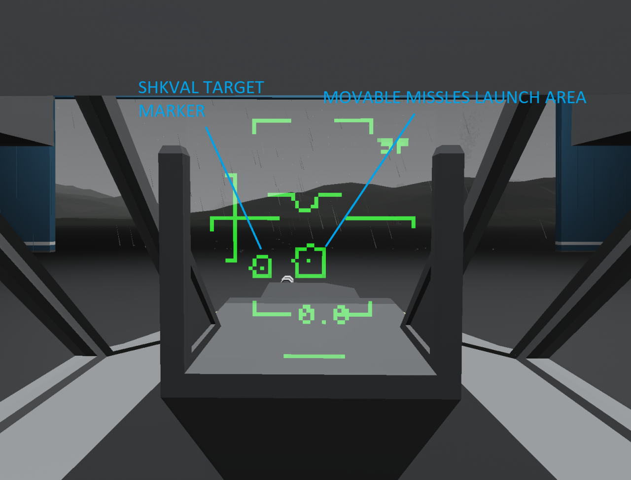 When you select a gun, a large rectangle will appear on the HUD. This is the cannon’s kill zone, in order for the cannon to hit the target, the SHKVAL mark on the HUD must be inside the rectangle: