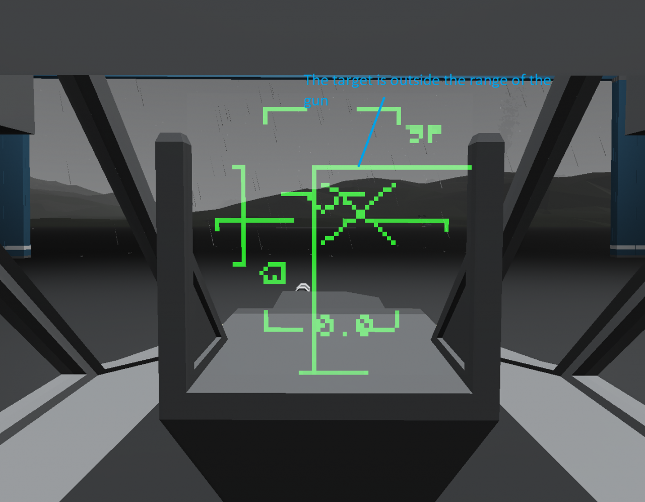 If the target is outside the range of the gun, then a cross will appear on the HUD, and the rectangle will start blinking: