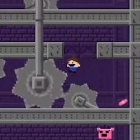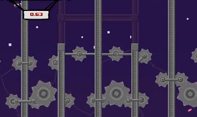 There are 8 long pillars in this level. 4 start the bottom, and 4 start at the top. To cheese this level, you simply need to jump over each of the top pillars one by one until you reach bandage girl. Just make sure you don’t go too high, or else you’ll die. I don’t have much else to say, this is very easy to do.