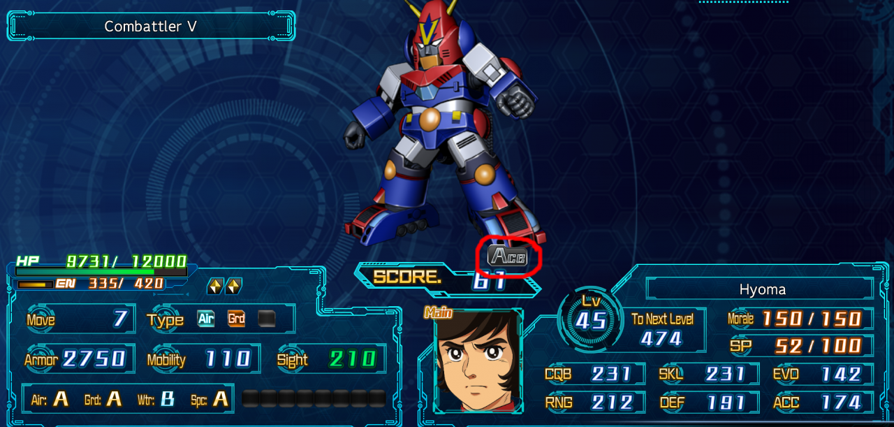 Whenever a pilot reaches 60 kills, he becomes an Ace. An Ace pilot starts the missions with +5 starting Morale, gains 10% more funds (doesn’t stack with Bless or Fortune), and gets a specific special bonus (for example, Ryoma Nagare gets “at 170 Morale, +30% damage dealt”). You will also get a special conversation on the Onboard section of the “Missions” menu, which provides 50 PP and a Stat Skill Program.
