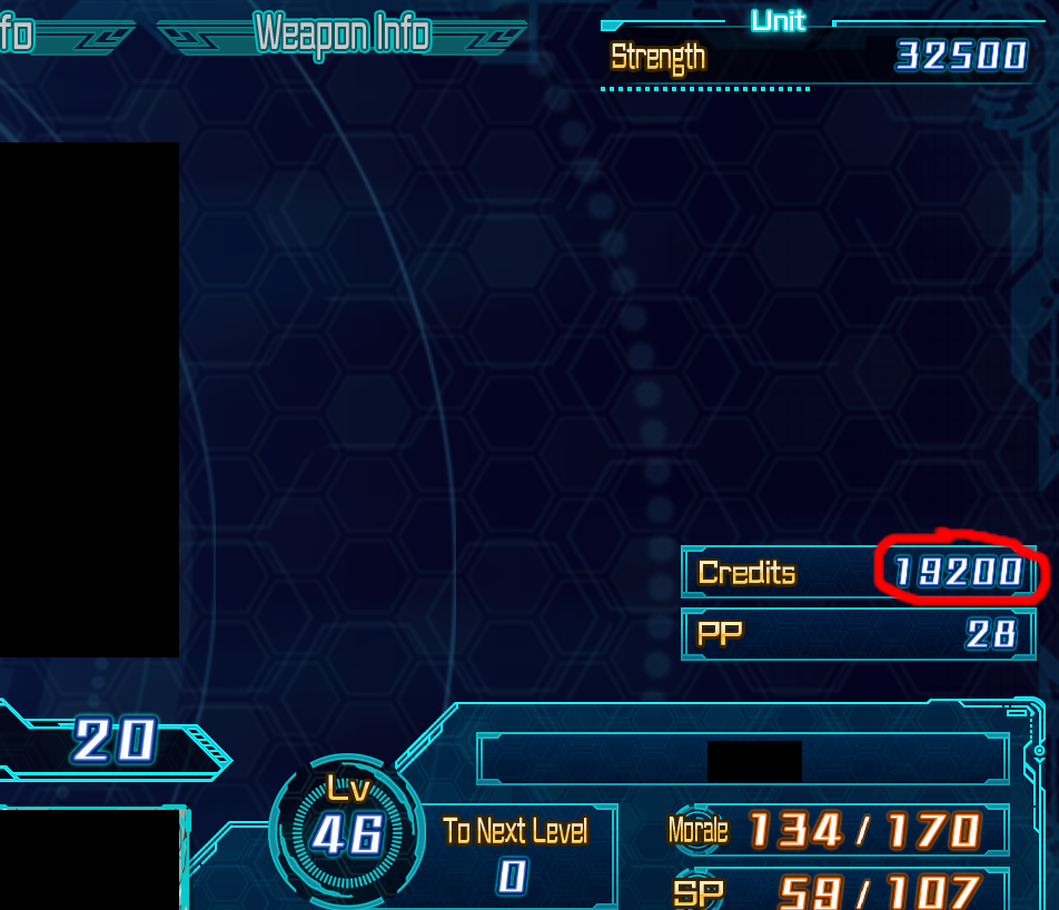 The Spirit Commands “Bless” and “Fortune”, the AOS upgrades in the “Investment Research” (“Lab” section) and items like “Credit Manual” are your friends here. But you also need a very valuable target: usually enemy battleships and robots with high HP piloted by “character with a name” have a high monetary value. You can find the value of an enemy here on the status screen: