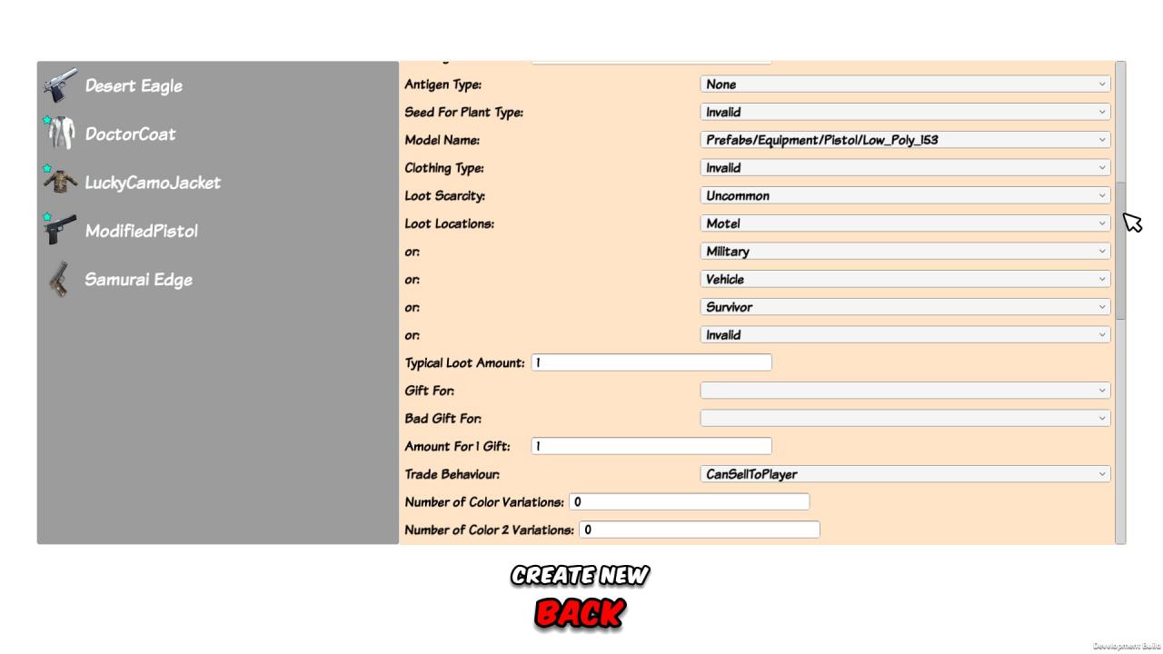- Trade Behaviour: Choose “CanSellToPlayer” if you want traders to be able to sell the weapon. (Make sure you selected survivor in loot locations before)
