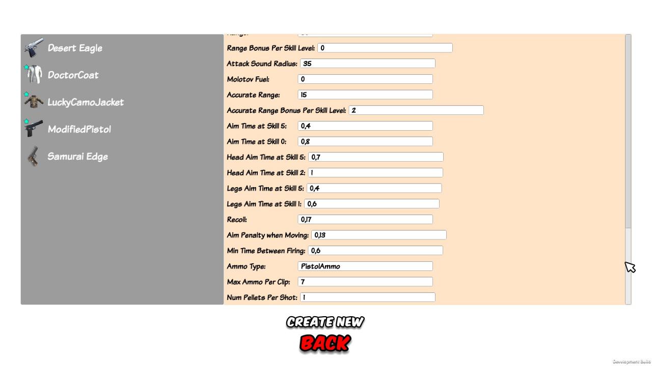 - Damage bonus per skill lvl: Put a value here if you want your points in the firearms stat to give a bonus to damage to your weapon. I’ll put 0,04
