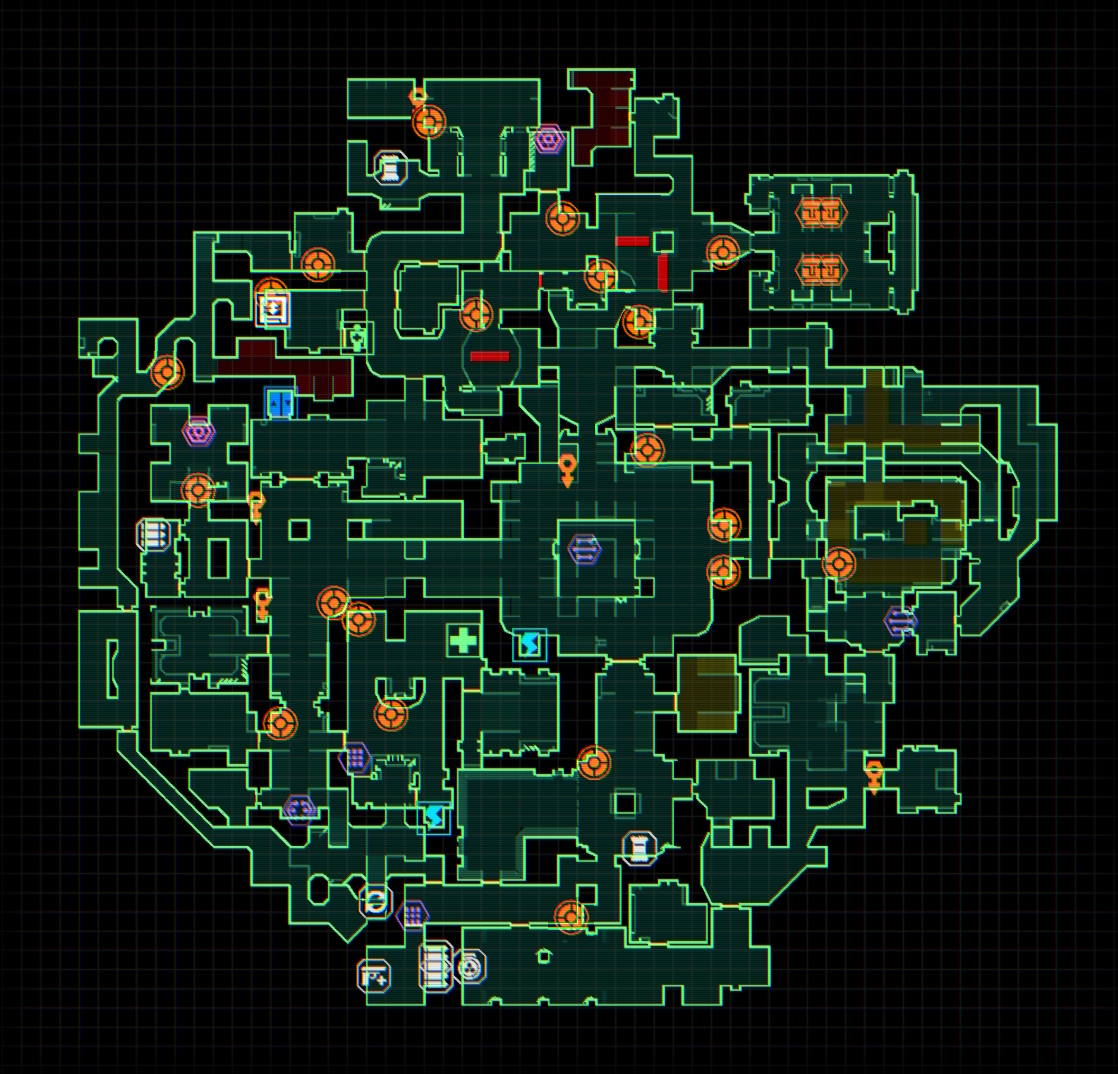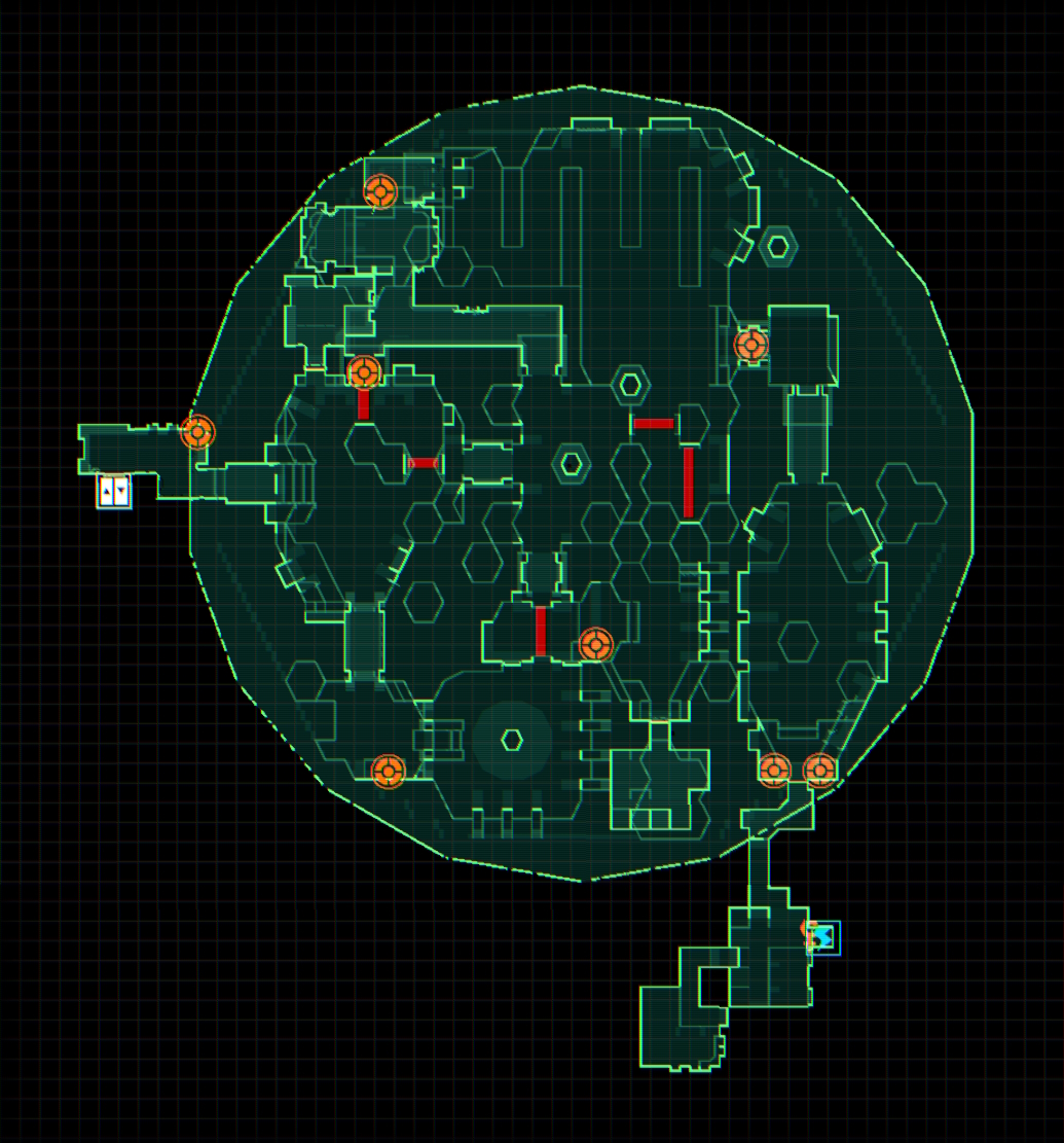 Level 8: Destroy all the cameras/CPU nodes and pick up the items/collectibles you want in this section before progressing to the Bridge (Level 9). Also keep in mind that you will lose access to your cargo lift once you enter the next area.