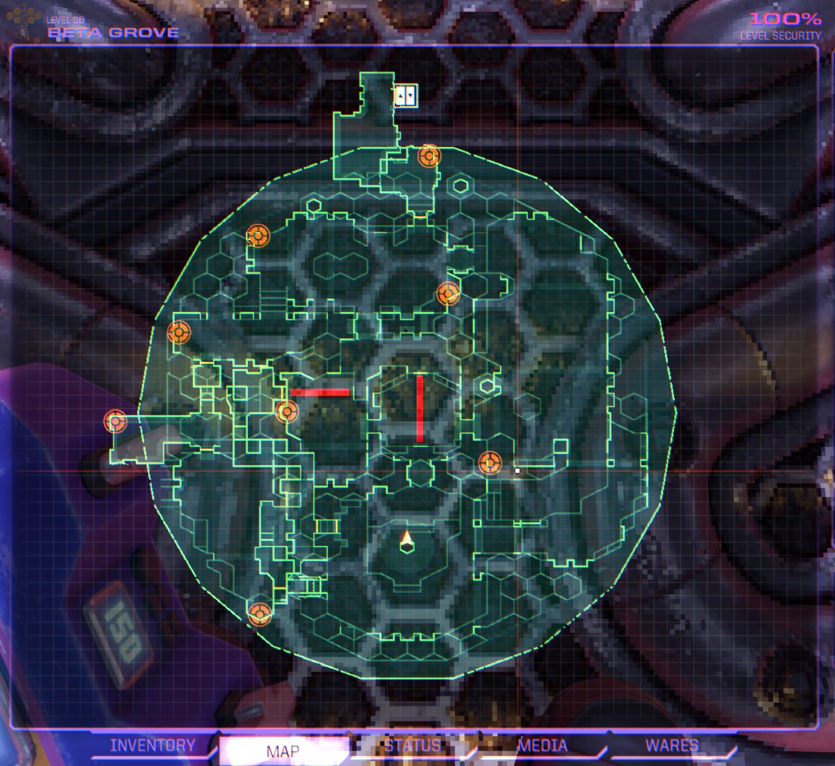 Beta Grove: Destroy all the cameras and pick up the items/collectibles you want in here before progressing to jettisoning the grove.
