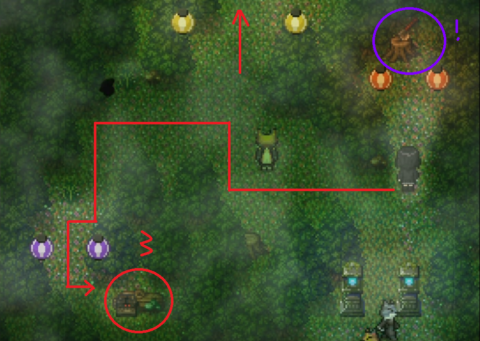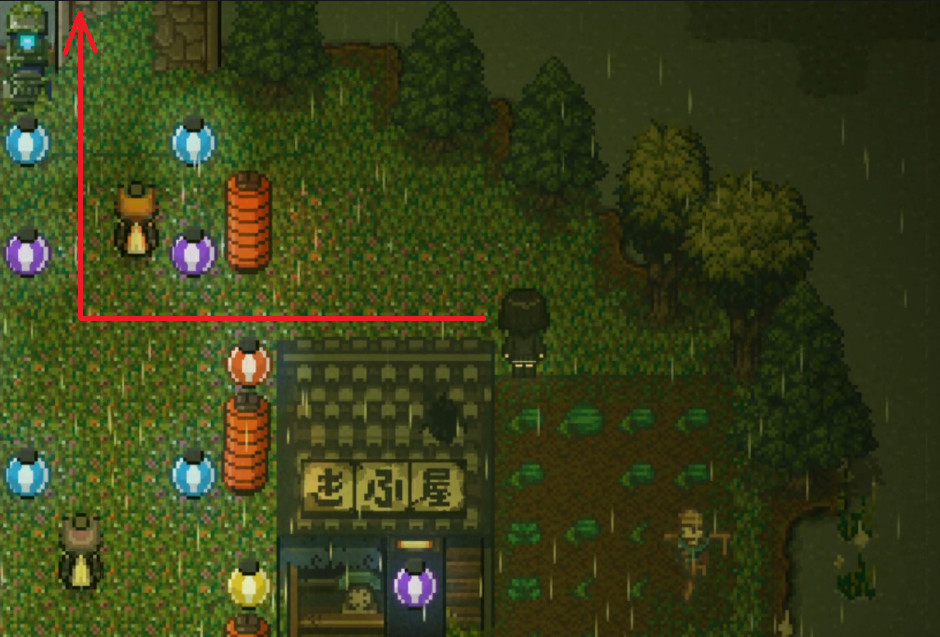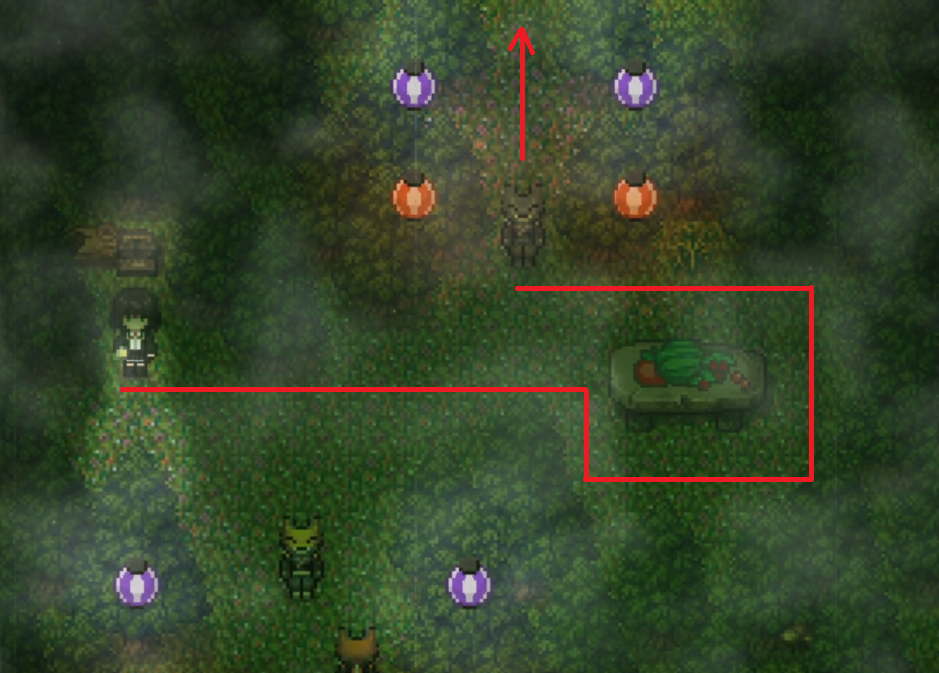Once entering the area, a scene plays out with Kihara, Kiritani and the deer. After the scene, speak to the deer and he will tell you to give him Sunshower Rainwater in exchange he will show you a way to get to Kuromori Town, the deer will also tell you about the God that the town worshipped. He hints that the last time that there was Sunshower foxes got married, and that it was near the school. There is nothing more to do currently, so head upwards.