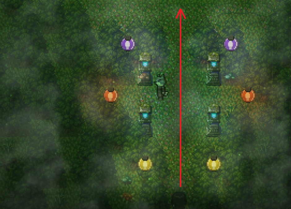 Simple dodge around this fox, be sure to make it to (3) first before heading up, there is 3 foxes at the top blocking your way so you need to change it to night before proceeding. This time changing the time results in the foxes disappearing and no fox spirits being there.