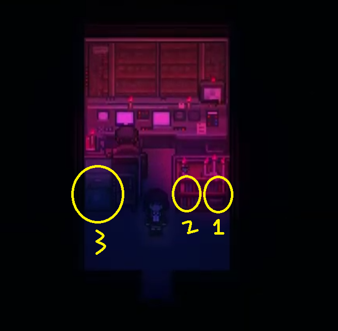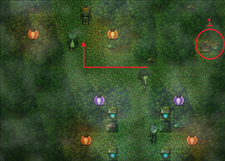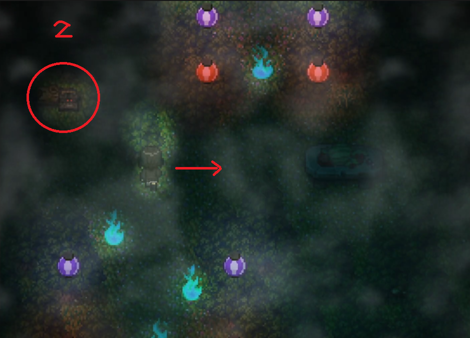 You will not be able to dodge these foxes, so move to where is is marked (1), this is a radio, allowing you to change the time to night where the foxes become somewhat of spirits floating back and forth making it easy to dodge around them.