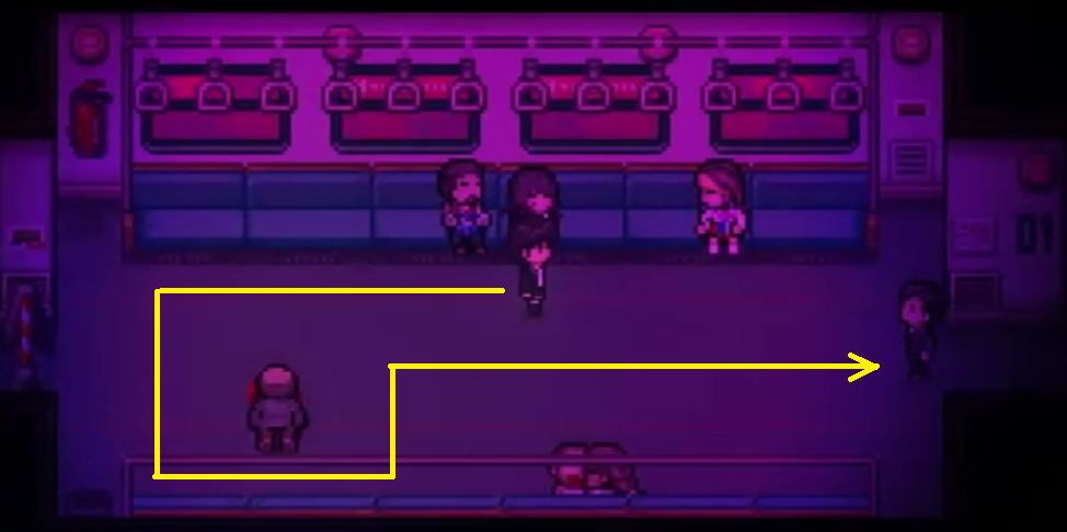 After the vent section Aizawa and the cats will go back to the last carriage. You can talk to them for optional dialogue. To continue proceed into the first cart where the gas was, and is now cleared out. After the scene with Nishimura and Yamada, interacting with the corpses provides you with a lot of information that contradicts what Yamada was saying (definitely read). Interact with the guy laying face down to get the Icepick which is important for proceeding. Interacting with Nishimura, Yamada will enter the carriage and you will need to dodge past.
