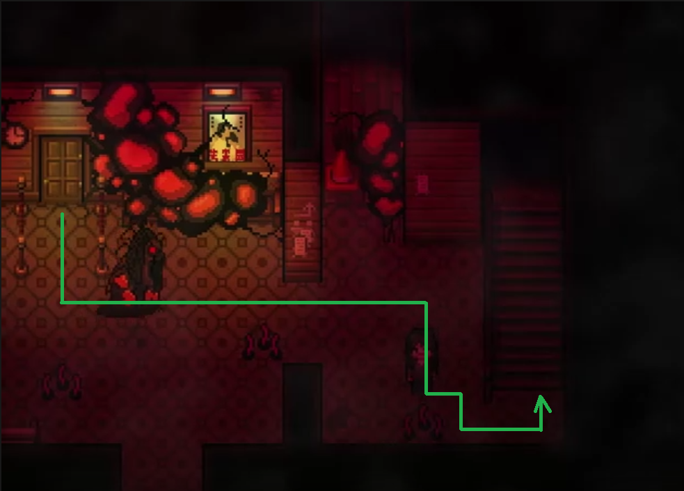 Keep following the path until you get to an intersection, go up past the spider to continue to the next area or go left for more dialogue between “Kihara” and Mochi-can. Before entering the next section, read the note and it will give you a hint for the next section. The second part of the vent, you need to walk/sprint where the tentacles are coming up from the floor, the path with no tentacles is the incorrect one and you will die.