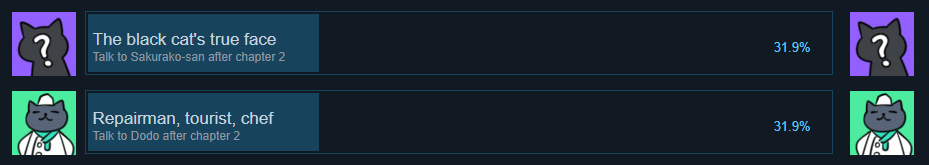 You need to backtrack after Chapter 2, before continuing to Chapter 3. You will need to go to the cafe, outside is Dodo and inside behind the counter is Kinoshita. Speaking to both gives you their respective Achievements.