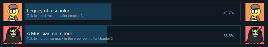 As discussed in the walkthrough, before going to the end of the game, you need to talk to Demon Mask and Izumi after finishing Chapter 3. Demon Mask is in the prop room by the piano, and Izumi is in the ceremony room (where he was earlier).