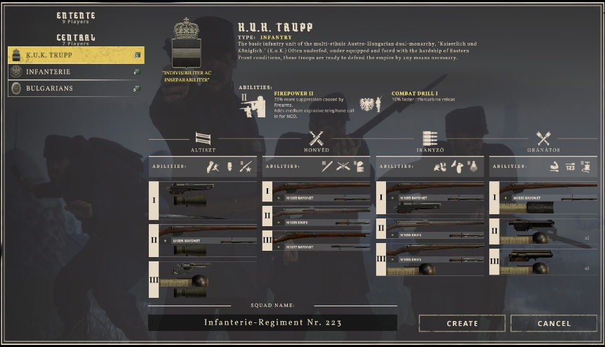 - Cossacks – Almost every loadout except Support tier 1+2 & Grenadier tier 1