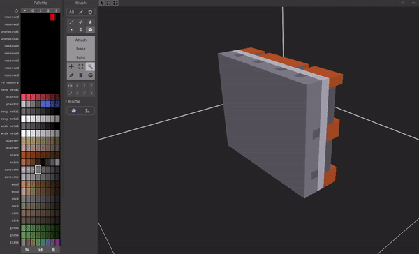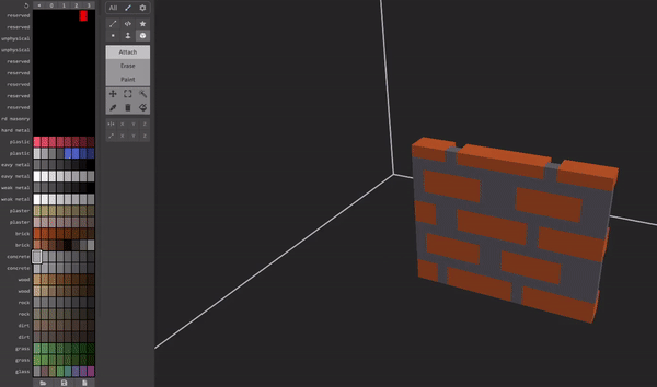 Another useful tool is the face select, that tool enables you to extrude voxels or to delete them.()