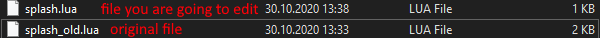 Find the splash.lua file, copy it and paste it as splash_old.lua so that you have a backup.