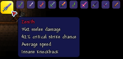 combine all sword thats we have(at hardmode anvil),we’re gonna abble to make the zenith :}