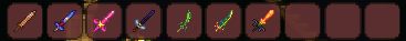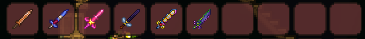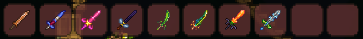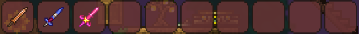 [at this time we should have coppershortsword,enchanted sword,Starfury,bee kepper,true night edge and true excalibur]