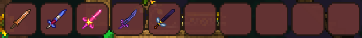 [at this time we still have coppershortsword,enchanted sword,Starfury,bee kepper and night edge]
