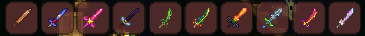[at this time we have all material that we need coppershortsword,enchanted sword,Starfury,bee kepper,terra blade,seedler,the Horseman’s Blade,influx waver,star wrath and meowmere]