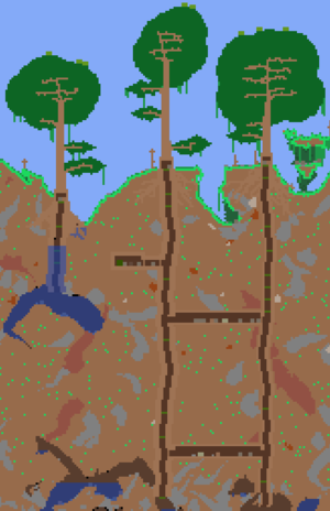 The Graveyard is a mini-biome that appears when three or more Tombstones are in close proximity. As the number of Tombstones increase, the game colors in the vicinity become gradually more desaturated, and lightning may randomly strike in the background. Graveyards cause Ghosts and Ravens to spawn, as well as night enemies like Zombies, Demon Eyes and Wandering Eyes in Hardmode, even during daytime hours.