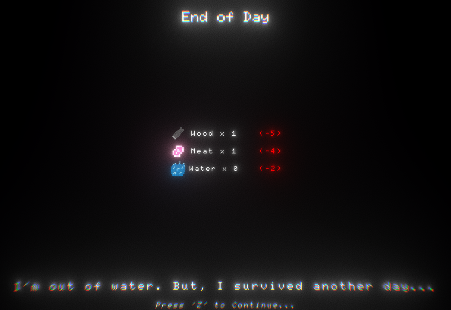 Basically, you need to Collect wood(5), meat(4) and water(2) each day.