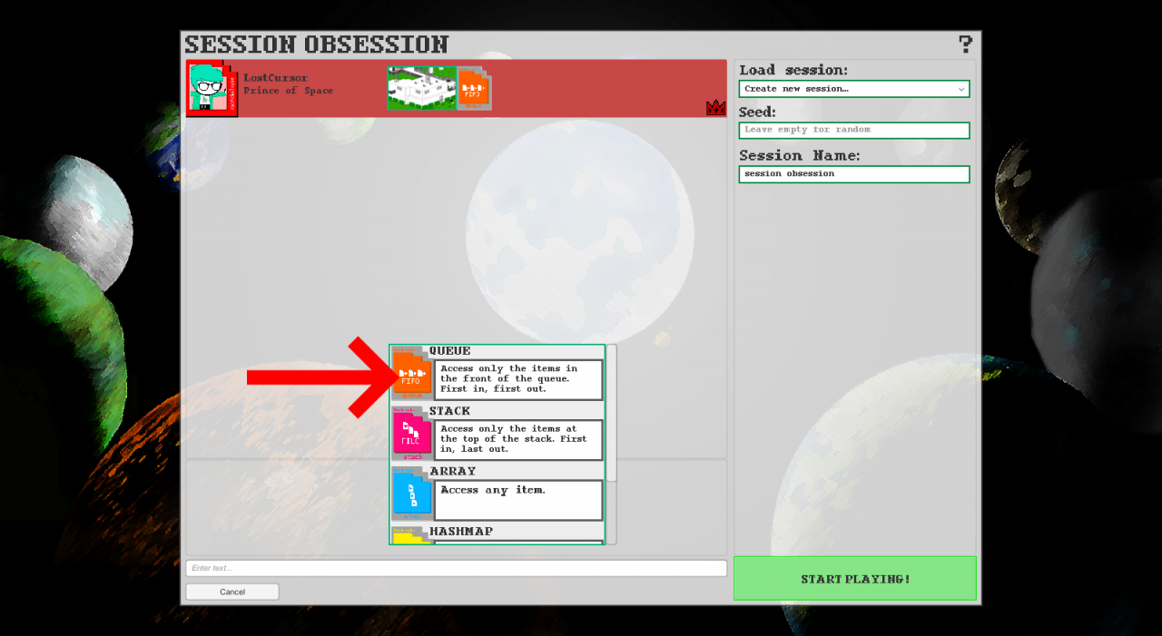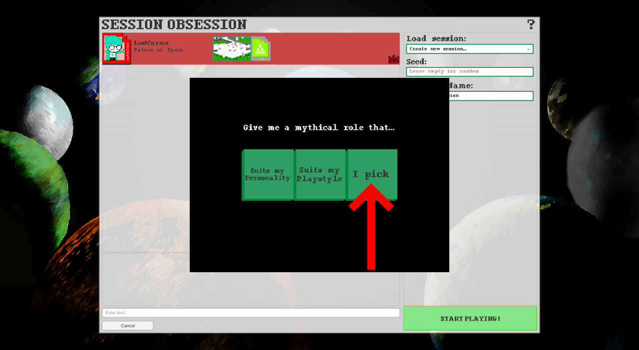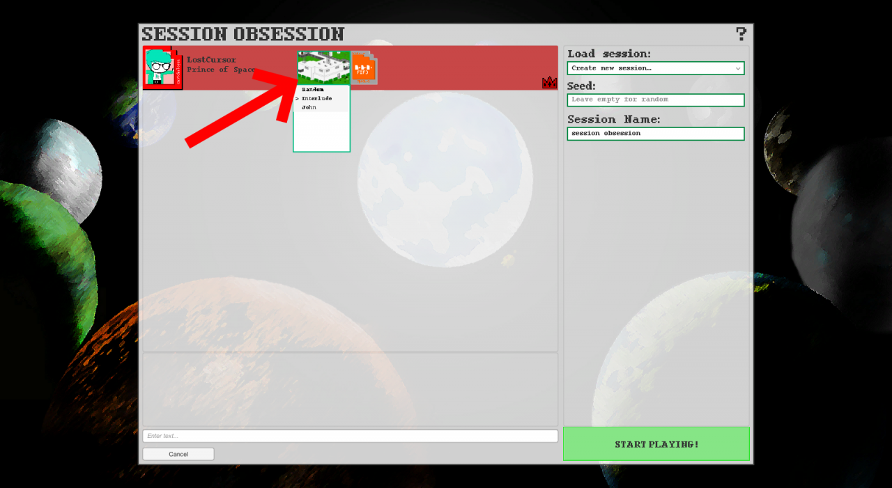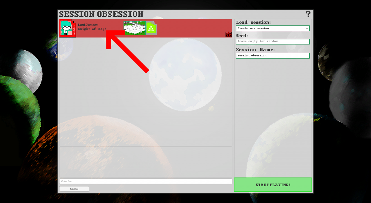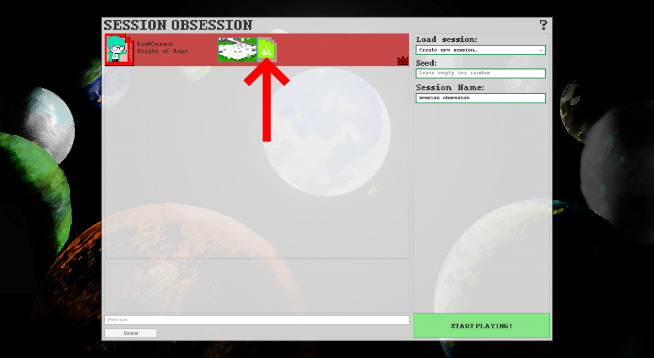 To start a SESSION lobby, simply click ‘Start!’ on the Main Menu,
