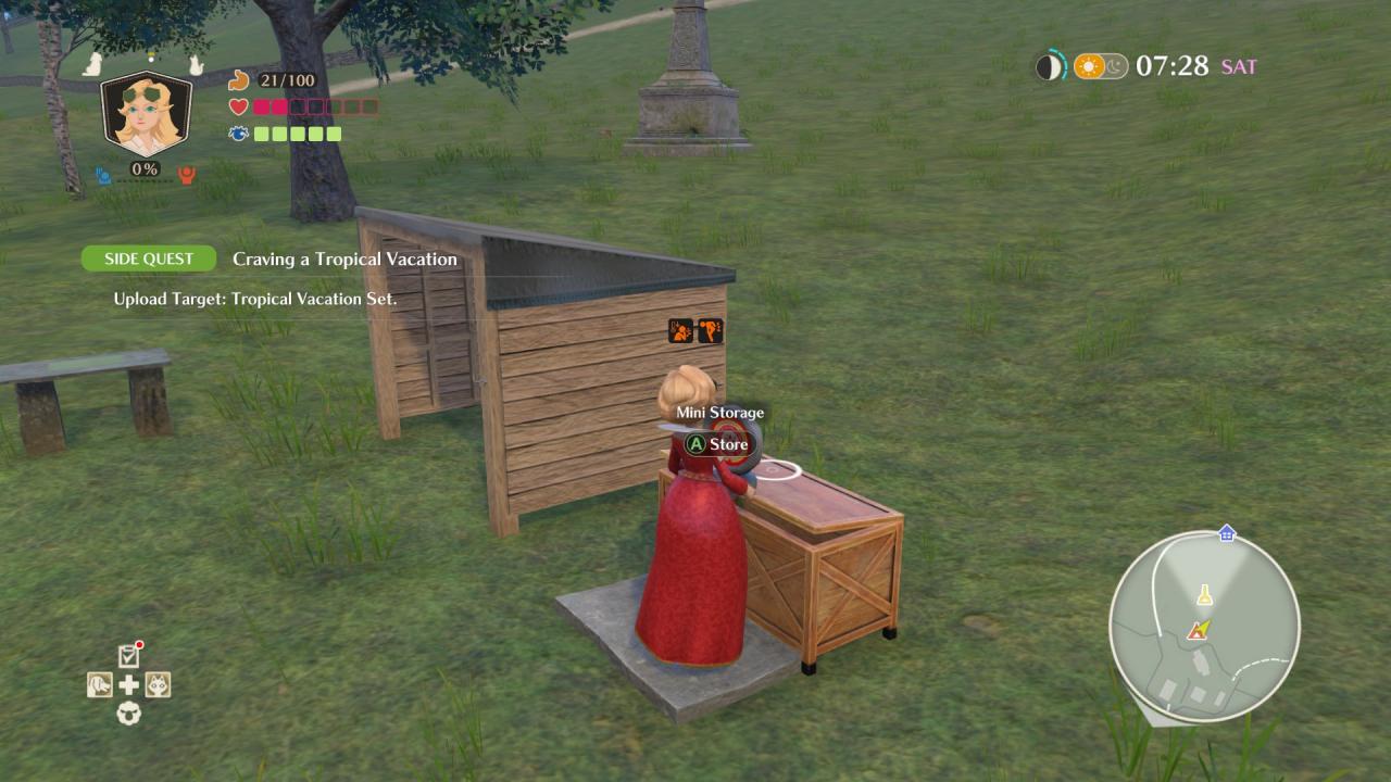 Fortunately, they don’t. If there is an activated campsite near the item, you can walk the item to the campsite, then hold the item over the storage crate, and it will give you the option to “store” doing so will let you pull the item out of storage at home and place it in your garden.