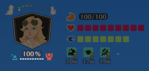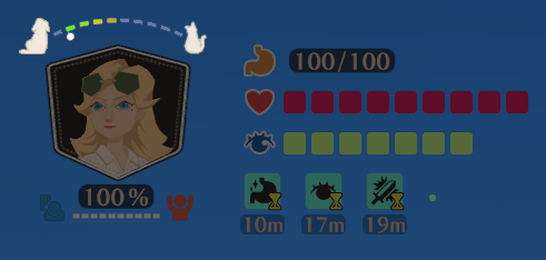 This stat displays your Stress level, indicated by the picture of Naomi becoming increasingly irritated. Visually, there are three different stress levels.