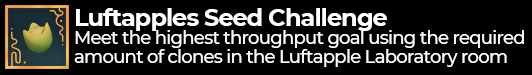 This is the hardest one. The “main” collector at the top gets backed up I think once it gets more than 3 Luftapples per cycle. Start at the very back near the throughput board and gently have a clone knock 2 Luftapples from their stems into the collector above. This takes a lot of trial and error.