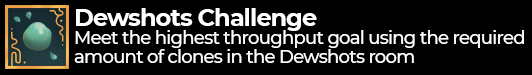 This one can be a bit tricky. Have one clone grab a blusher and attach it to a stick. Then have it poke the first Dewshot that comes from the tube from the Lilypad room. Then have it lob that molecule toward the basket. Plant another Blusher and another Dewshot plant and have another clone do the same thing taking that Dewshot from the plant. Have another clone grab one of the blushers in between the cycles of the other clones, attach it to a stick, and like the first clone grab one of the Dewshots coming from the big tube and lob it toward the input basket. All molecules should be aimed well and be pretty close to the basket, but slightly above it.