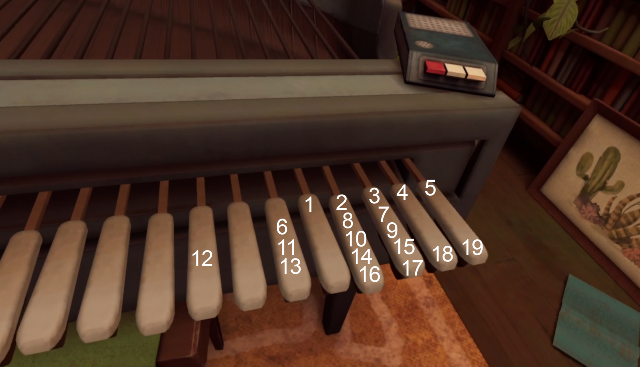 This one is tricky. See the screenshot below for help. You must play the melody that Edea plays on the recording (the one sitting on top of the piano). If you follow the diagram below, you should get it no problem. Just pressed the keys in the order of the numbers. If that’s somehow confusing let me know and I’ll make a better diagram 😀