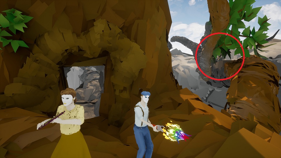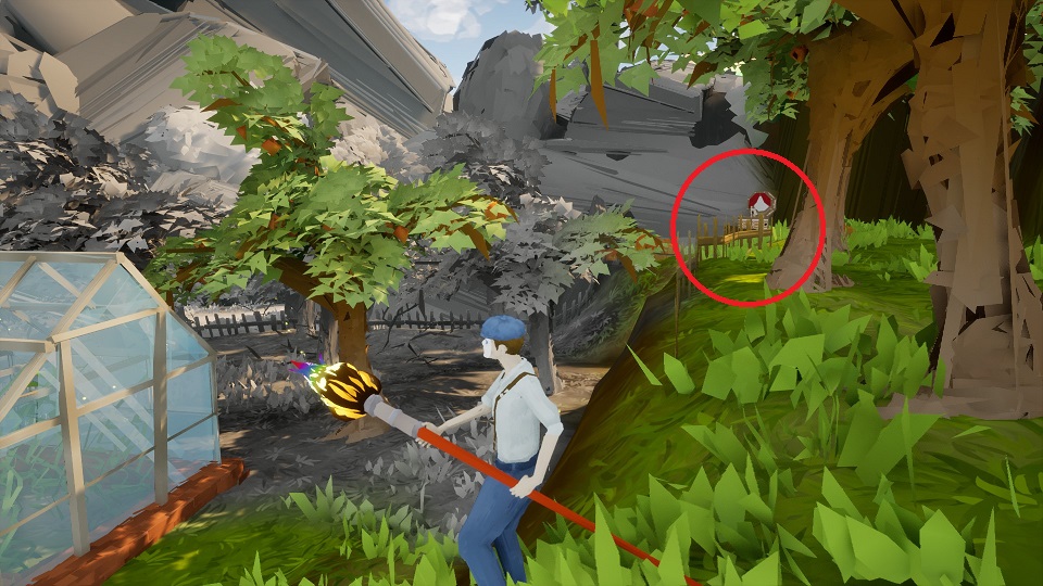 Next one is on the tree, you need to go through the gate at the middle of the picture to progress the story. Pick up the audio collectible before.