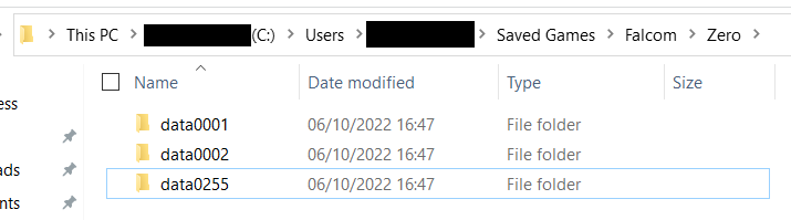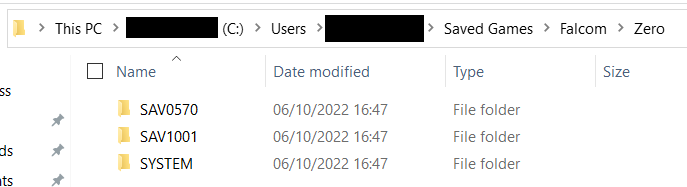 Move the 3 folders to “C:/Users/[Your User Name]/Saved Games/Falcom/Zero”