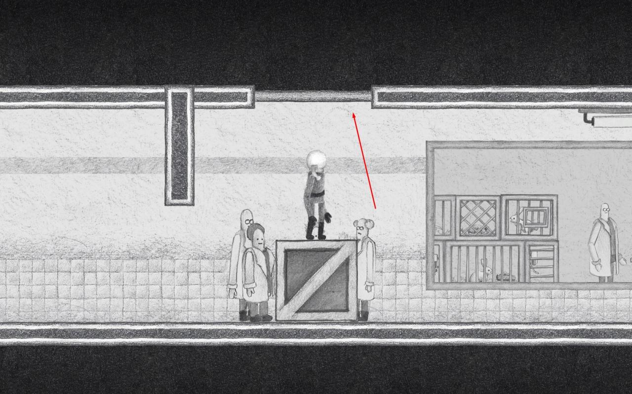 Push the tutorial box in the elevator and bring it with you to reach the hole in the ceiling to get Lab photograph.