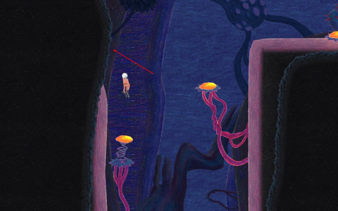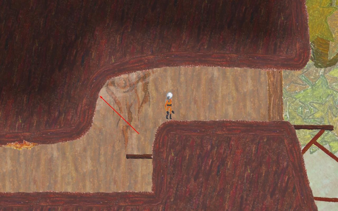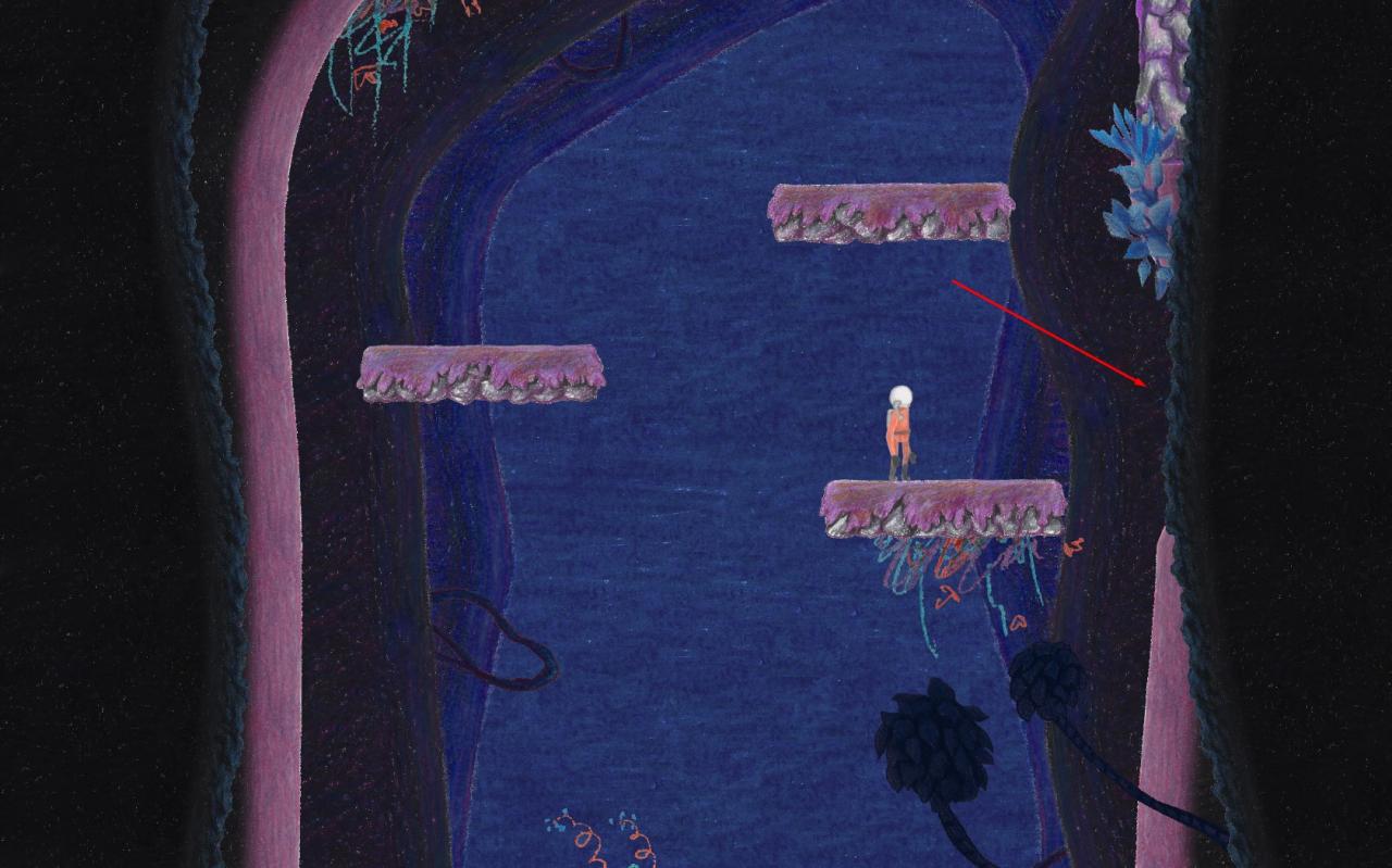 After leaving the beetle, at the area with the ropes, jump below to the right to activate the lever to drop the box down. After talking to the frog, don’t go in the newly opened left path, go down, then right to use the box to jump to the right to get Familiar Painting.