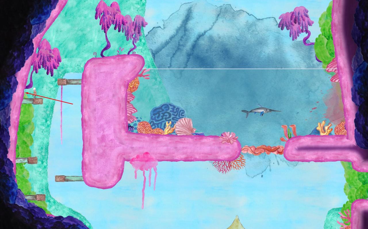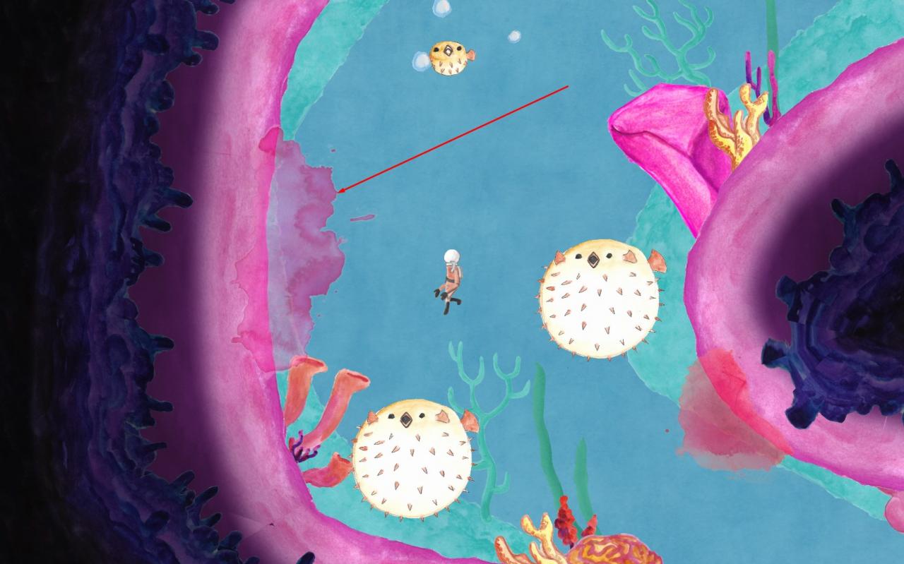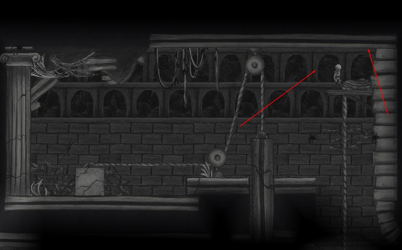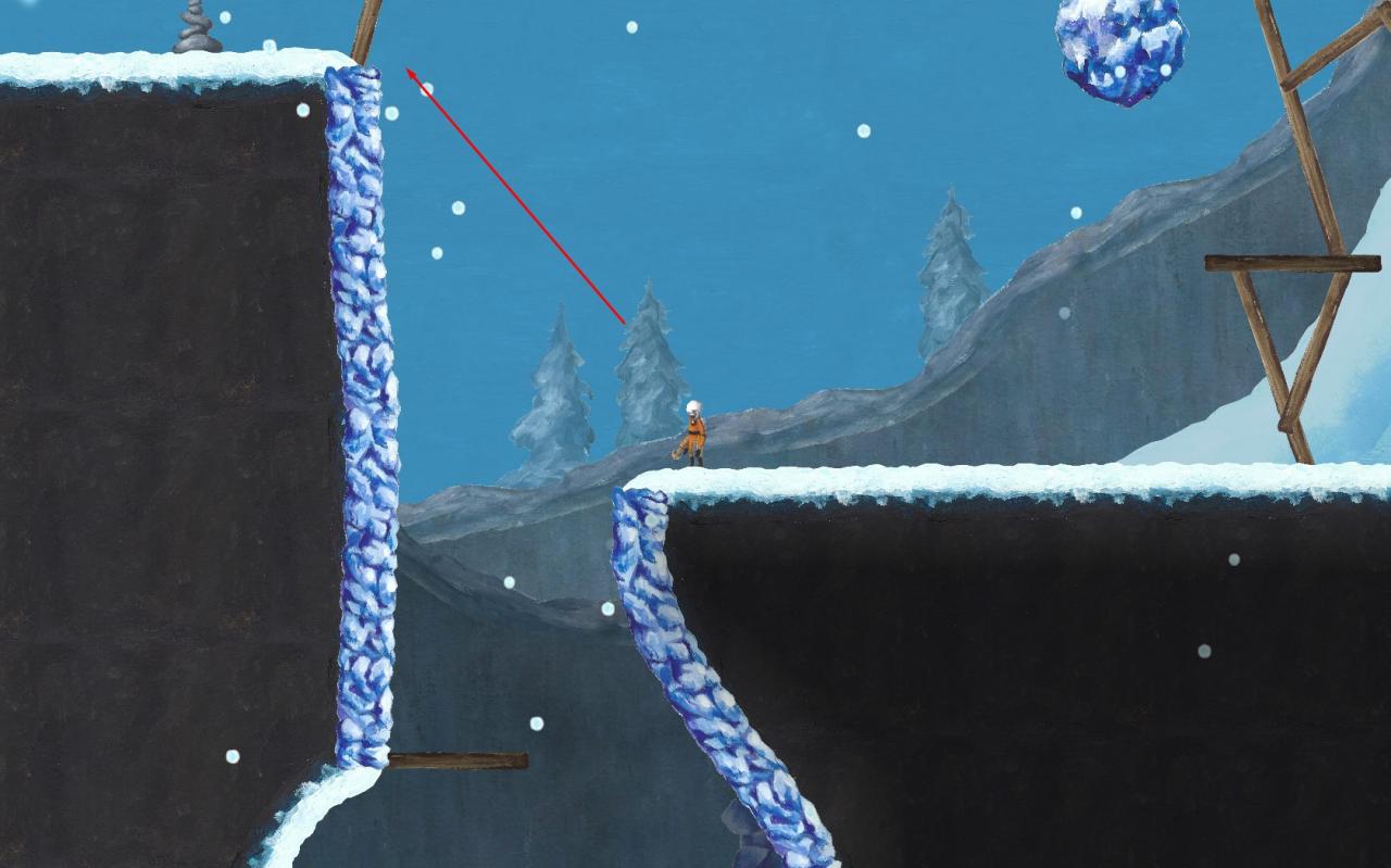 After leaving the beetle, at the area with the ropes, jump below to the right to activate the lever to drop the box down. After talking to the frog, don’t go in the newly opened left path, go down, then right to use the box to jump to the right to get Familiar Painting.