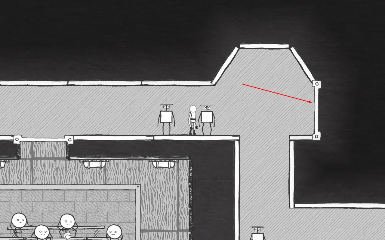 After you throw the square to open the second door, be careful not to rush too far ahead and fall down, throw him at the second security camera.