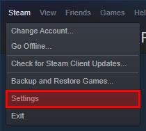 To do this, first open Steam settings by clicking the “Steam” option in the top left of your Steam client, and selecting “Settings” in the menu that appears.