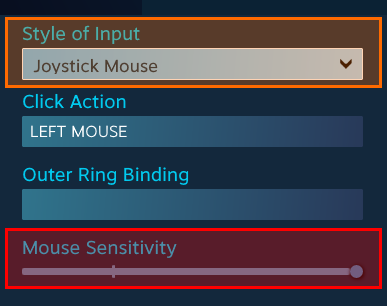 We’re almost done now! We just have to prepare your fake “mouse” for use. Firstly, ensure your analog stick’s “Style of Input” is set to “Joystick Mouse”, allowing us to use the analog stick as a mouse in the game. Next, make sure to drag the “Mouse Sensitivity” slider all the way up.